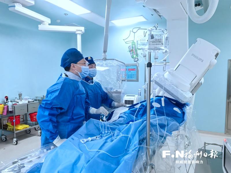 医生开展非ST段抬高型心肌梗死经皮冠状动脉介入治疗术。(闽侯县总医院供图)